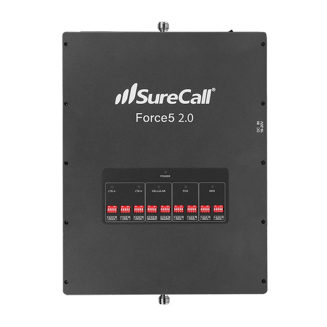 The 80dB SureCall Force5 Industrial Bi-Directional Amplifier (BDA) provides quality cellular coverage for commercial and enterprise buildings. This amplifier improves signal strength for all major North American cell carriers for clear voice calls, reliable text messages and fast data speeds.